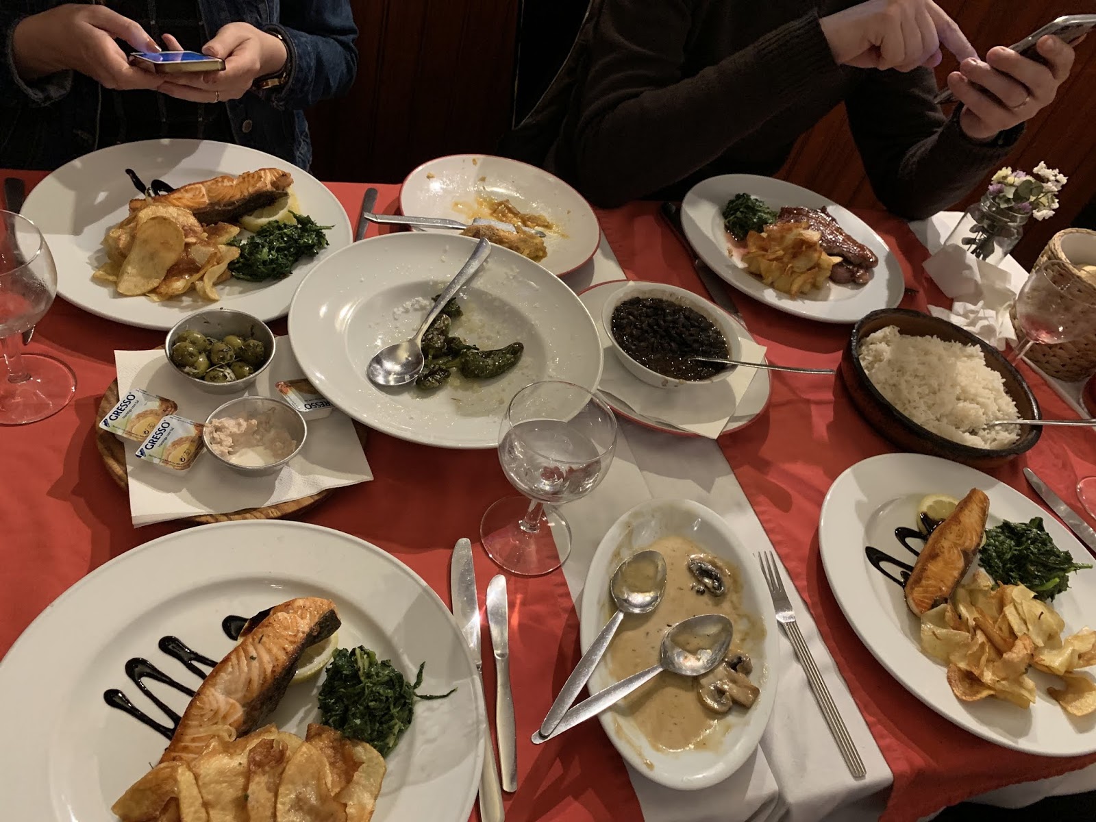 While we were at the beach with our hosts, they decided to suprise us and reserved a table in a beutiful portuguese restaurant. As we were walking towards the restaurant they also took us for the best eclairs in Porto. At the restaurant we tried a lot of diffrent dishes, the waiters were bringing various food to our table. They were only appetizers before our main dish which included huge, tasty salmon. We joyfully spent the evening and came back home with full tummies☻☺